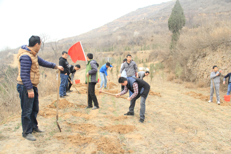 春回大地萬物蘇,植樹踏青好時節(jié)。 一年一度的植樹節(jié)又到來了!始終提倡“綠色環(huán)保,健康生活”的銀豐公司再一次以植樹活動為契機,圍繞“多一片綠葉,多一份溫馨”的主題,為創(chuàng)建綠色環(huán)境貢獻自己的一份力量。 2015年3月14日的早晨7點整,銀豐公司的義務植樹車隊排成一條長龍,浩浩蕩蕩的向目的地“滎陽市崔廟鎮(zhèn)索坡村義務植樹基地”有序的出發(fā)。到達目的地之后,植樹小組組長立即有序地安排本組人員的任務分工,隨后便進入了熱鬧朝天的植樹活動之中。你挖坑、我提水、他取苗,井然有序的分工使得熱鬧的氣氛中不顯一絲慌亂,拎著桶桶滿溢的水,提著棵棵清脆的樹,挖著均勻整齊的坑,回蕩著經(jīng)久不散的笑聲,整個山坡呈現(xiàn)出一派火熱的勞動景象。最后在各組人員熱情積極的努力下,我們僅用一個小時的時間便超額超量的完成了今年的植樹任務。 隨后便進入了本次植樹活動的“陽春三月來踏青,美味趣事共分享”特殊環(huán)節(jié),所有同仁都獻出自己了的拿手菜、零食、特產(chǎn)等食物和大家一起分享,分享的同時讓銀豐家人間的感情更加和睦、融洽,也使得大家充分感受到分享帶來的快樂。 本次活動在一片歡聲笑語之中順利圓滿結(jié)束,意猶未盡的歡樂使本次植樹踏青活動的意義得到充分體現(xiàn),真正做到了快樂工作,健康生活!