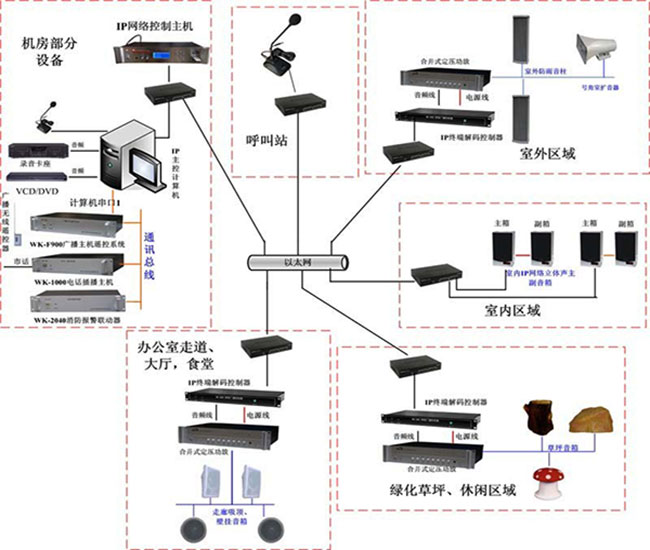 1.面向公眾區(qū)(廣場、車站、碼頭、商場、餐廳、走廊、教室等)和停車場等的燈光音響廣播會議系統(tǒng):這種系統(tǒng)主要用于語音廣播,因此清晰度是首要的。而且,這種系統(tǒng)往往平時進行背景音樂廣播,在出現(xiàn)災害或緊急情況時,又可轉換為緊急廣播。