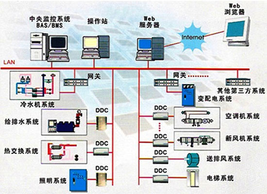 樓宇自控系統(tǒng)由監(jiān)控軟件、DDC控制器、傳感器、閥門及執(zhí)行機(jī)構(gòu)四大部分組成。